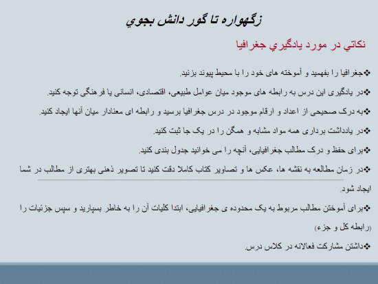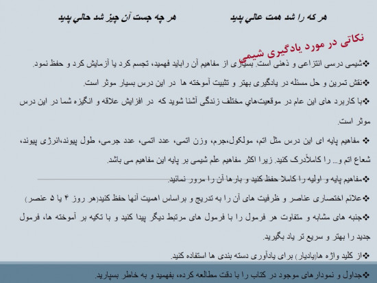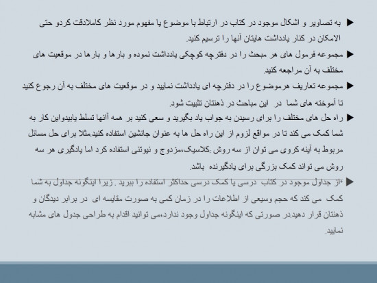 روش مطالعه درسها را در ادامه مطلب ملاحظه فرمایید.
