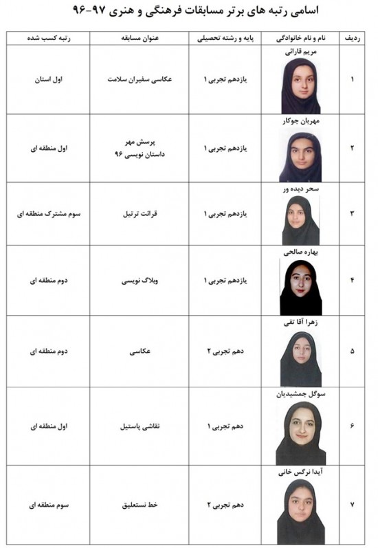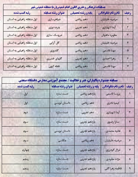 -نفرات برتر مسابقات فرهنگی-هنری