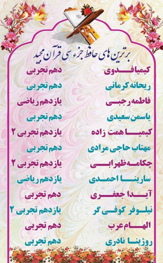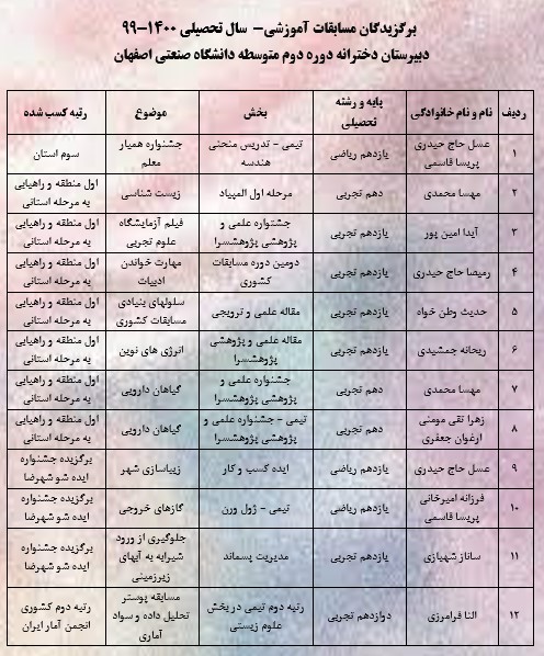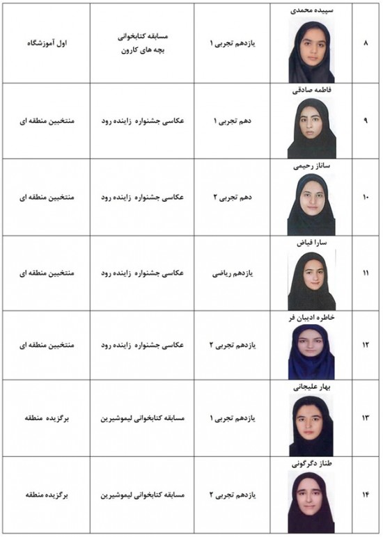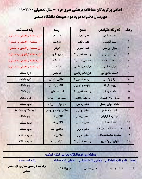 - اسامی دانش آموزان حائز معدل بالای 19
