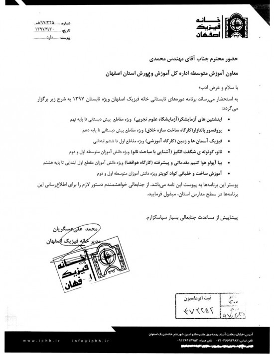 برای اطلاع از برنامه های تابستانی خانه فیزیک، ادامه مطلب را ملاحظه فرمایید.