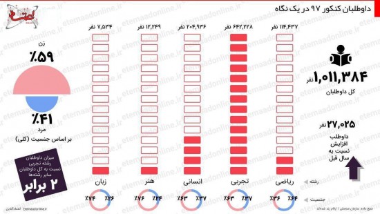 آمار جالب توجه درباره شرکت کنندگان آزمون 97