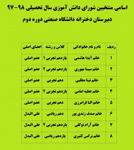 اعلام نتایج انتخابات شورای دانش آموزی 98-97