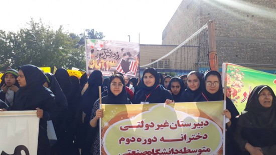 شرکت دانش آموزان در راهپیمایی 13 آبان- از هنرستان ملک زاده تا مصلای خمینی شهر