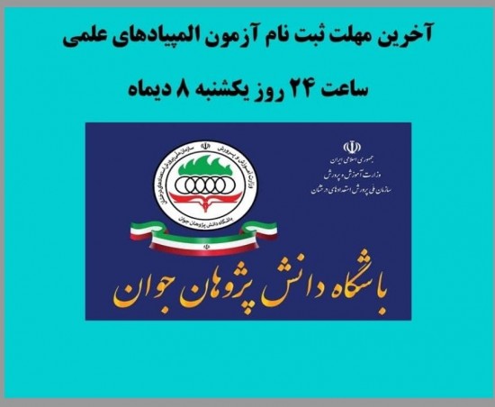 دانش آموزان علاقه مند به شرکت در المپیادهای علمی کشور می توانند از روز شنبه 30آذر ماه 98 با مراجعه به سامانه ثبت نام الکترونیکی المپیادها به نشانی oly.medu.ir ثبت نام کنند.