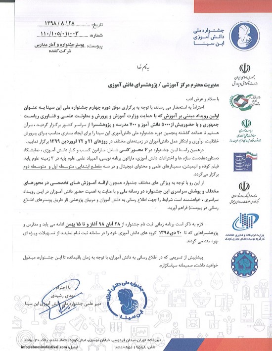 جشنواره ملی ابن سینا سال تحصیلی 99-98
