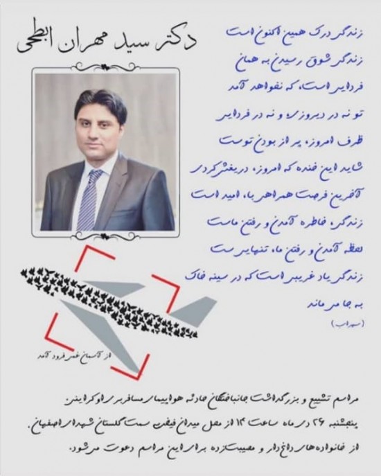 به سوگ نشستن در اندوه فقدان فرزند، صبری عظیم می خواهد. صمیمانه در غم این ضایعه اسفناک با شما شریکیم. از خداوند منان برای شما و خانواده محترمتان شکیبایی و صبری جمیل مسالت داریم و امیدواریم روح پاک آن عزیز سفرکرده با اجداد طاهرینش محشور باشد.