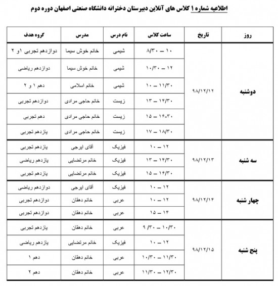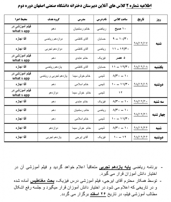 به دلیل تعطیلی مدارس، جهت پیشگیری از شیوع بیماری، کلاس های آنلاین و رفع اشکال، برای دانش آموزان تدارک دیده شده است.