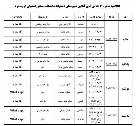 اطلاعیه شماره 3 کلاسهای آنلاین