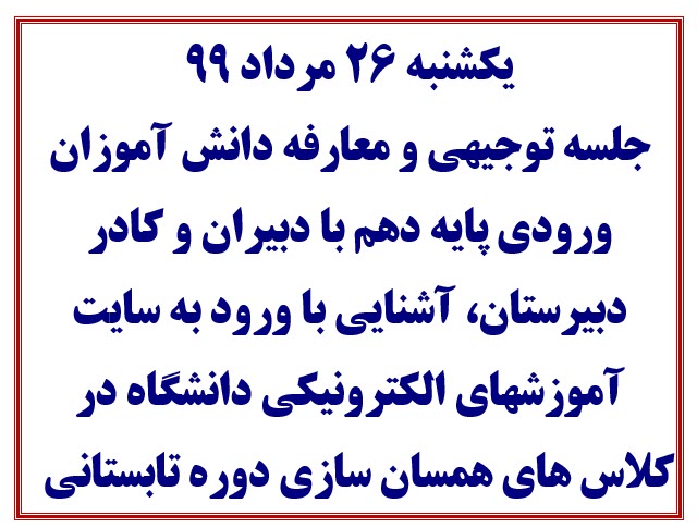 جلسه توجیهی و معارفه ورودی دهم
