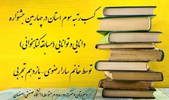 کسب رتبه سوم استان توسط خانم سارا رضوی دانش آموز پایه یازدهم تجربیتبریک ویژه به خانم سارا رضوی و خانواده محترم ایشان و تمام دانش آموزان و اولیا و همکاران دبیرستان