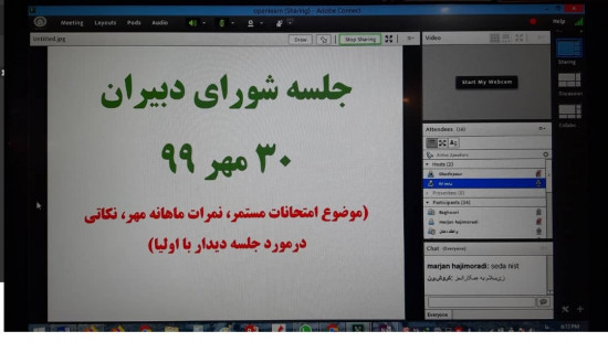 روز چهارشنبه 30 مهر 99، ساعت 6 بعدازظهر، شورای دبیران بصورت وبینار برگزار گردید.