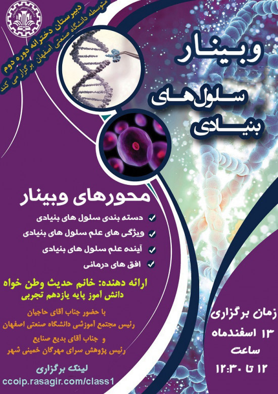 وبینار سلولهای بنیادی با حضور دانش آموزان، دبیران، جناب آقای حاجیان و تعدادی از سرگروه های محترم آموزشی سطح استان، توسط خانم حدیث وطنخواه برگزار شد...