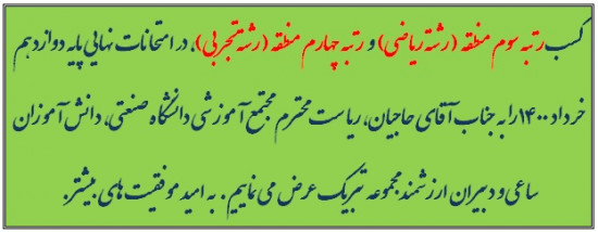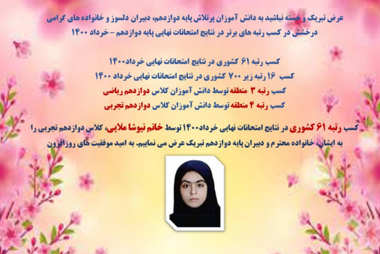 کسب رتبه 61 کشوری در نتایج امتحانات نهایی خرداد 1400