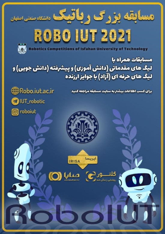 ? ثبت نام مسابقه رباتیکRoboIUT? همراه با چندین میلیون جوایز نقدی ??? و همچنین همراه با جوایز غیر نقدی و فرصت شغلی? ????????برای دانشآموزان(سطح مقدماتی) و دانشجویان (سطح پیشرفته) و آزاد برای همه (سطح حرفهای) به صورت مجازی و حضوری همچنین طرح تشکیل تیم و آموزش ساخت ربات با بهترین فیلمهای آموزشی برای لیگ مسیریاب مقدماتی و پیشرفته.