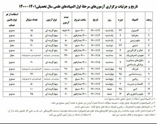 تاریخ و جزئیات برگزاری مرحله اول المپیادها