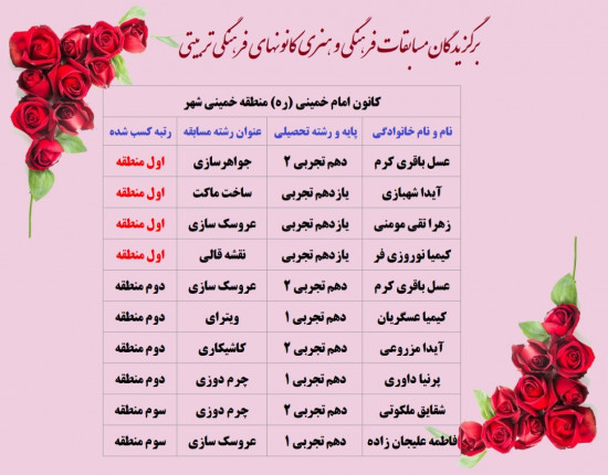 اصلاحیه برگزیدگان مسابقات جشنواره فرهنگی و هنری کانونهای فرهنگی تربیتی