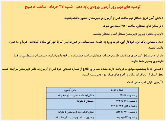 دانش آموزانی که شماره کارت 334 الی 347 از سیستم دریافت کرده اند، قبل از شروع آزمون به دفتر مراجعه کنند.